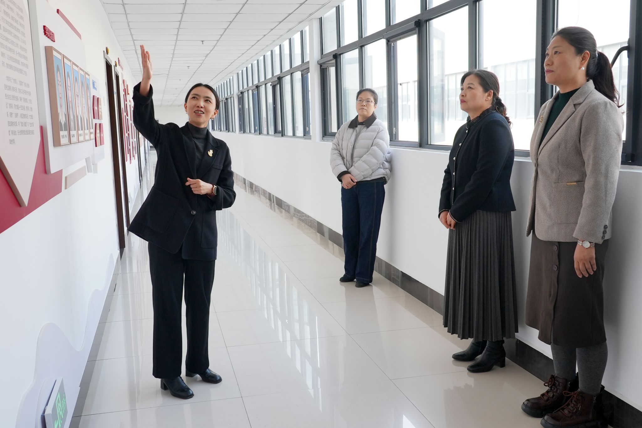 在马克思主义学院院长郝思惠的讲解下,首先实地察看了马克思主义学院文化墙和办公区域,从“党建引领强根基”到“师资建设提素养”,从“思政课程建设焕生机”到“科研成果破难题”,从“实践研学育新人”到“协同联动促发展”,一幅幅图文展板系统呈现了马院在师资队伍、理论教学、实践育人、社会服务等方面的发展历程与标志性成果。其间,李志萍不时驻足交流、询问思政课改革创新、青年教师培养、大思政课建设等情况,对学院深耕马克思主义理论教育教学、坚守“马院姓马、在马言马”的鲜明导向给予充分肯定和指导。