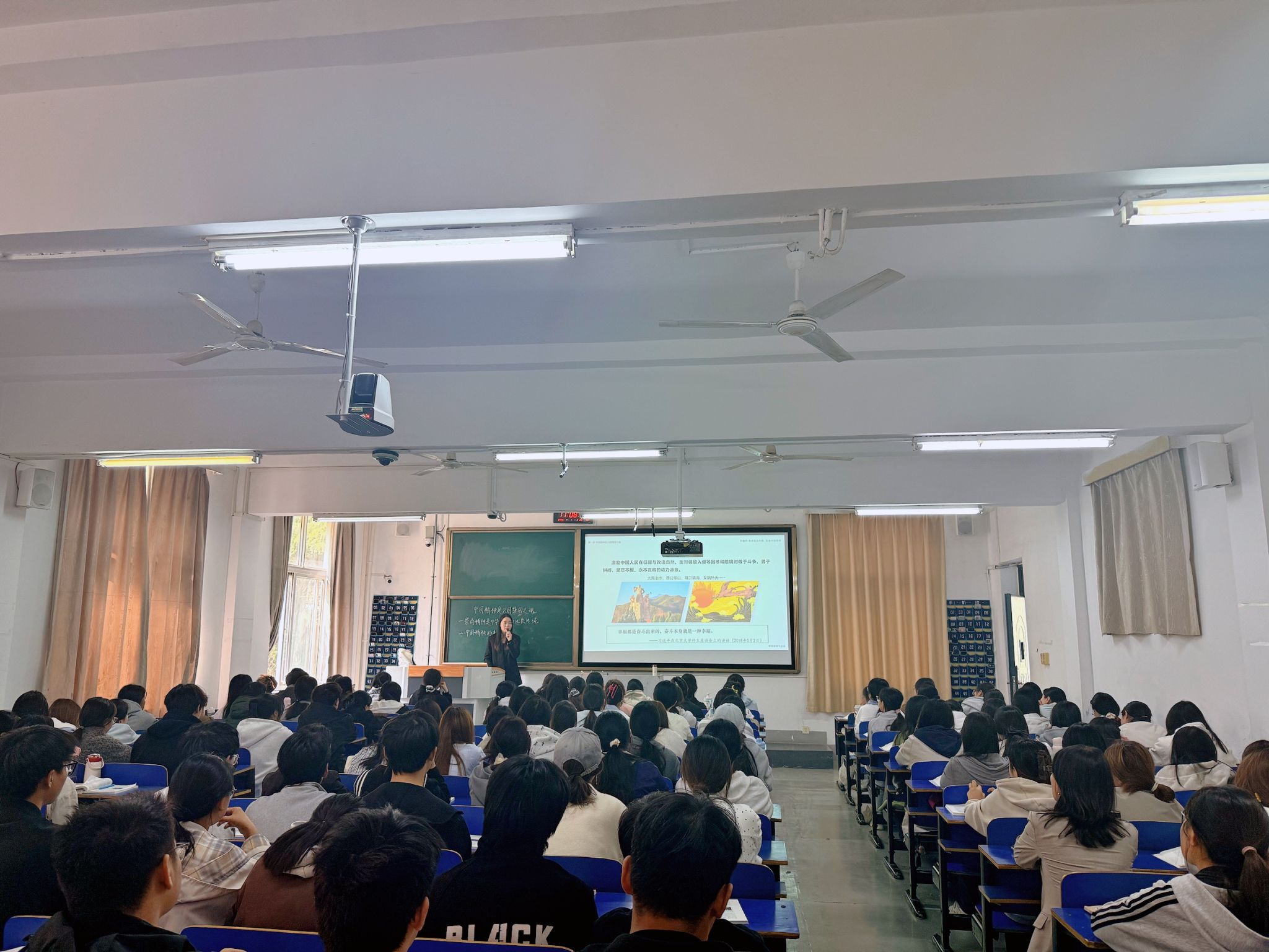 调研组专家采取随机抽取、推门听课的方式走进思政课课堂,分别听取了思政课教师张馨悦讲授的《习近平新时代中国特色社会主义思想概论》课、朱珂玟讲授的《思想道德与法治》课及薛珂讲授的《形势与政策》课。